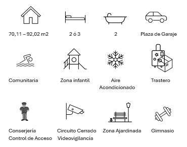 Estas propiedades espaciosas y de primera calidad se encuentran en un impresionante complejo situados a 50m del mar y espectaculares áreas comunes con amplios jardines, con una piscina comunitaria principal, una piscina climatizada, una piscina para niños, jacuzzi y gimnasio con máquinas bio-saludables, sauna, petanca, ajedrez, ping-pong, pista de pádel, zona de juegos infantil y parking de bicicletas. Dependiendo de la tipología elegida van desde 280.000€ a 395.000€.